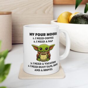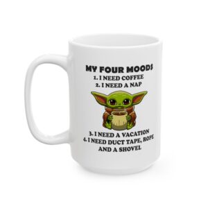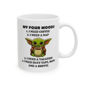 A glossy ceramic mug designed for everyday comfort and a touch of personality. Smooth white ceramic showcases bright, crisp prints that pop against the shiny finish. The comfortable C-handle feels familiar in hand while the sturdy build holds either 11oz or 15oz of your favorite beverage. Safe for microwave reheats and dishwasher cleanup, this mug is lead- and BPA-free so you can sip with confidence. Small enough for a morning ritual, large enough for a long afternoon — it brings color and character to routine moments.
