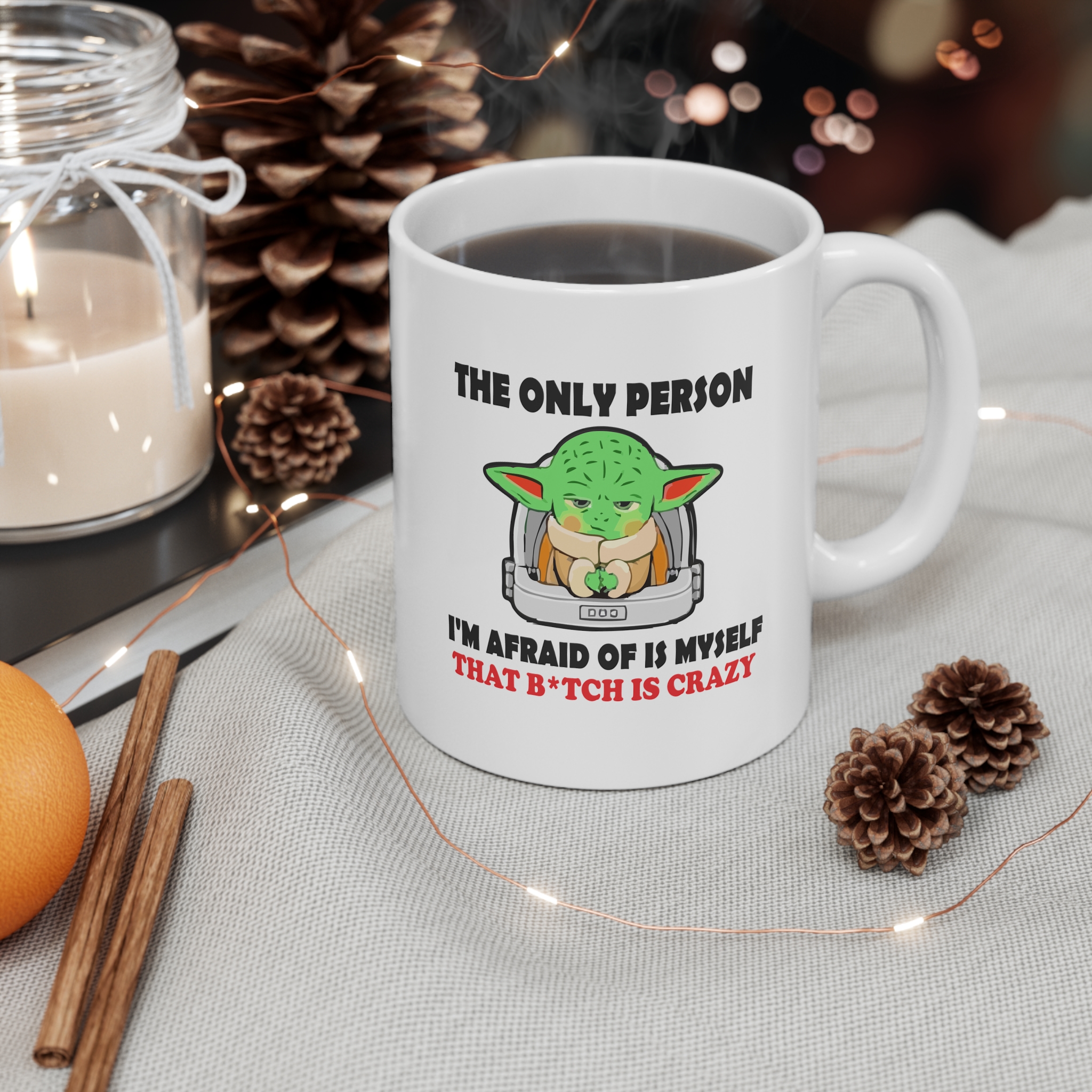 A playful ceramic mug that brings a wink and a smirk to morning coffee. Bright, detailed printing wraps a cute, grumpy green character clutching a cup, with bold, cheeky lettering beneath. The crisp white ceramic keeps colors vivid while the large C-handle gives a comfortable, steady grip for slow sips or quick refills. Sturdy and low-maintenance — pop it in the microwave to warm drinks or the dishwasher when you’re done. This mug adds character to a desk, kitchen shelf, or cozy corner, and sparks laughs when shared with friends who appreciate quirky, irreverent humor.