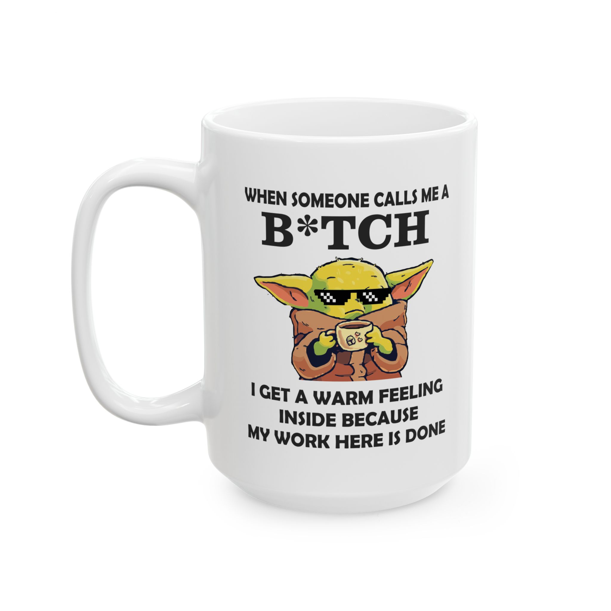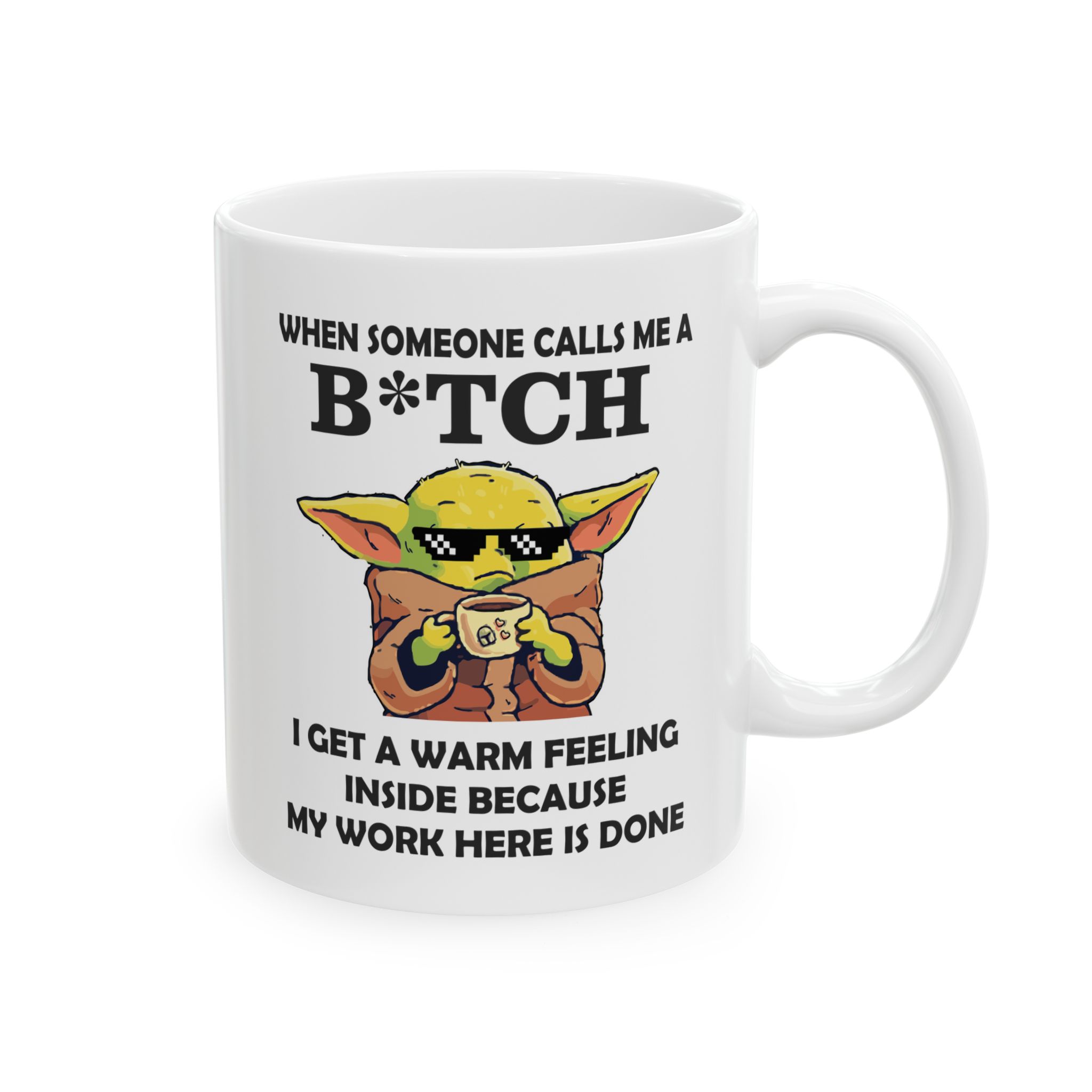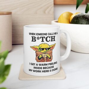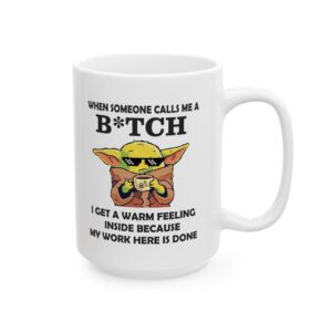 A bright, glossy ceramic mug that adds a little humor and warmth to morning routines. The white base makes the colorful printed illustration pop, while a comfortable C-handle and shiny finish give it a classic, everyday feel. Durable and safe — lead- and BPA-free, microwave- and dishwasher-safe — this mug stands up to daily use and keeps designs crisp and vivid through repeated washes. Available in two sizes, it fits both quick espresso moments and long, slow sips.